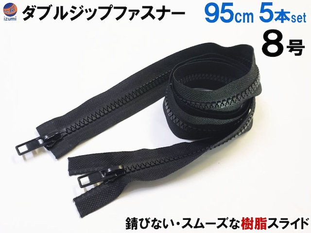 ダブルジップファスナー (95cm 5本set) #8 ダブルジッパー 樹脂製 ダウンジャケット 修理
