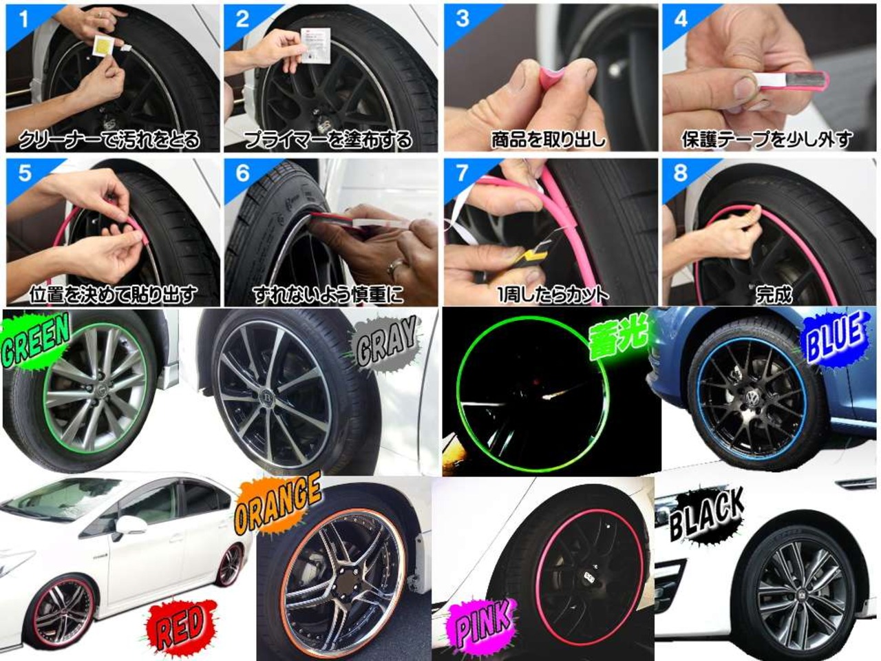 リムの形状や状態は当店ではわからない為、粘着力に不安な場合はご自身で両面テープをご用意し、 元々貼りついている両面テープに両面テープを貼ってご使用下さい。
