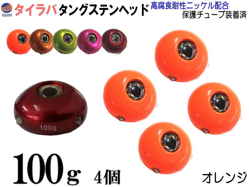 タングステン (柿 100g 4個) タイラバ ヘッド 鯛ラバ シンカー 保護チューブ付