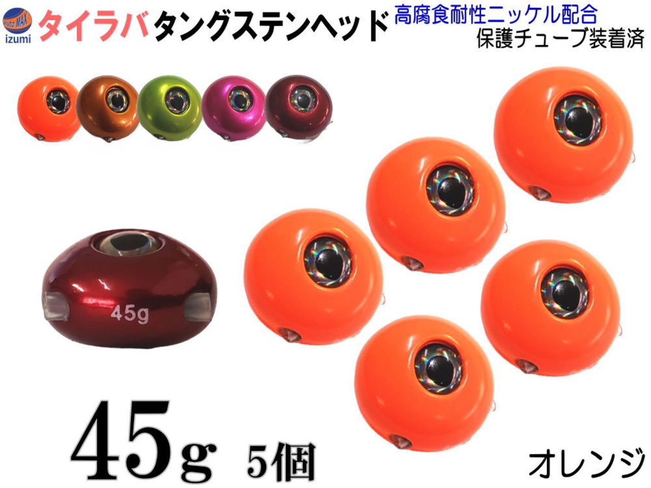 目つきタイプのタイラバヘッド。鯛ラバオモリシンカー。