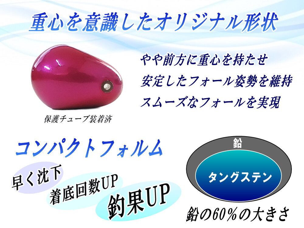 ・二枚潮、ドテラ流し等、潮の流れ左右されにくく、鉛玉よりふらつきが少ない