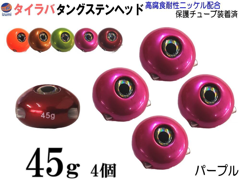 タングステン (紫 45g 4個) タイラバ ヘッド 鯛ラバ シンカー 保護チューブ付