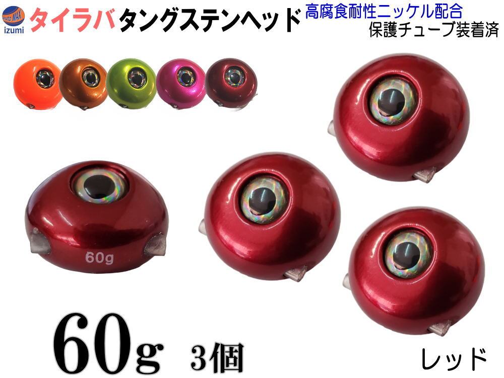 タングステン (赤 60g 3個) タイラバ ヘッド 鯛ラバ シンカー 保護チューブ付