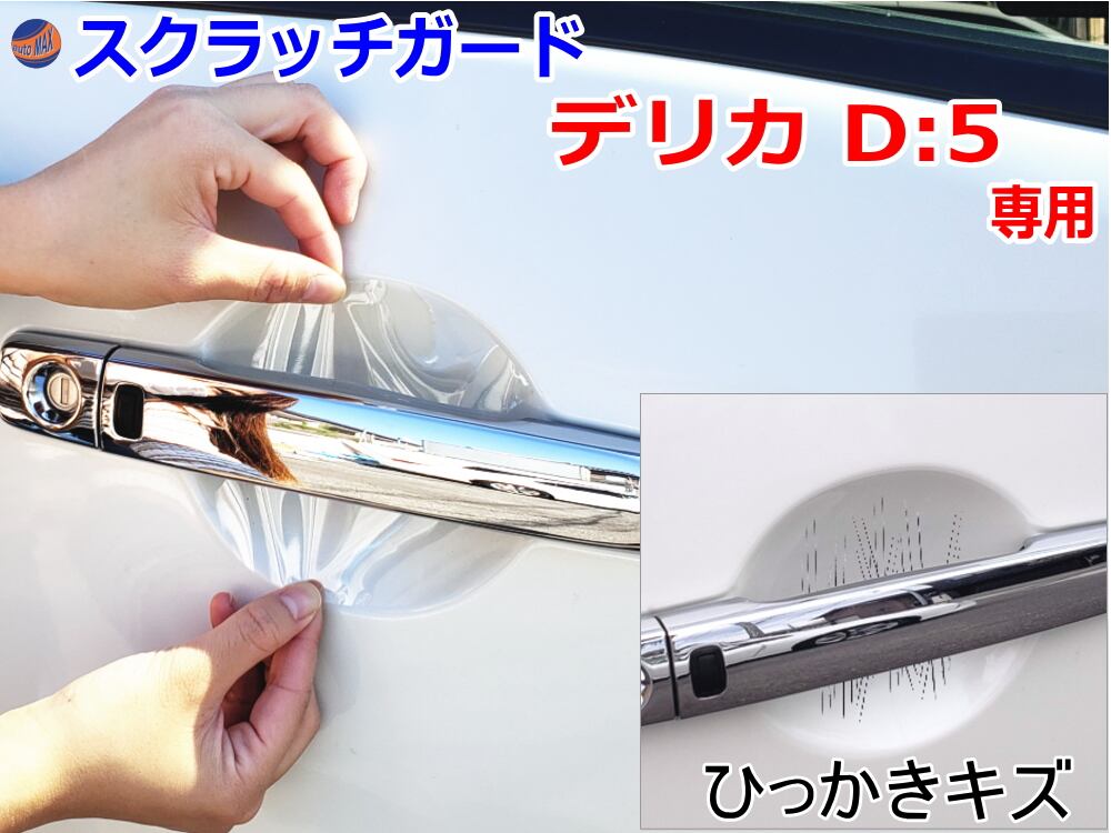 ドアノブスクラッチガード (デリカ D:5) 車種専用 カット済み ドア 傷 防止 フィルム ガード ドアカップ スクラッチ PPFフィルム ペイント プロテクションフィルム 擦りキズ ひっかき 保護 クリア 透明 | AUTOMAX izumi