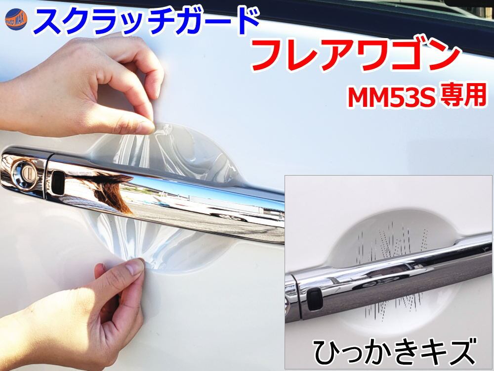 ドアノブスクラッチガード (フレアワゴン MM53S) 車種専用 カット済み ドア 傷 防止 フィルム ガード ドアカップ スクラッチ PPFフィルム ペイント プロテクションフィルム 擦りキズ ひっかき 保護 クリア 透明 | AUTOMAX izumi