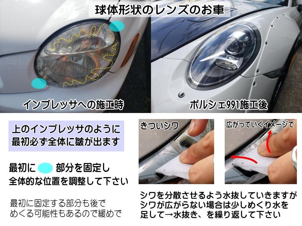 型が合わない、のではなくヘッドライトの湾曲に合わせ伸ばしながら貼る商品です。