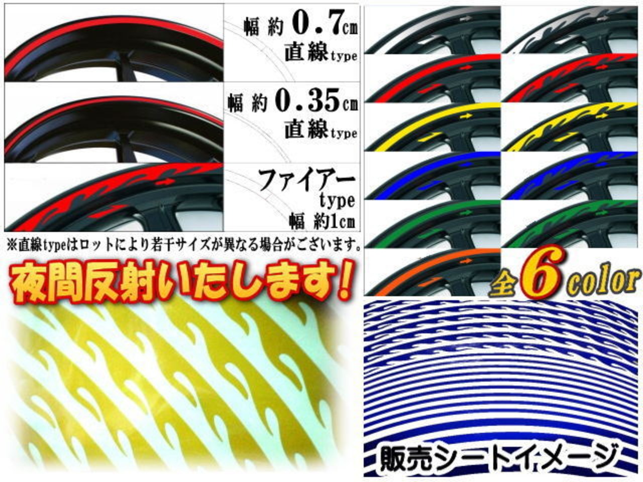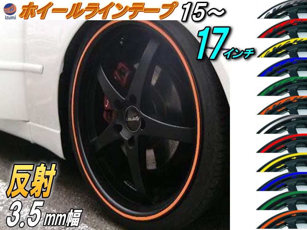 リム 0.35cm 直線 反射 幅3.5mm リムステッカー 15〜17インチ対応 リムライン 黄 柿 銀 青 赤 緑 イエロー オレンジ シルバー ブルー レッド グリーン | AUTOMAX izumi