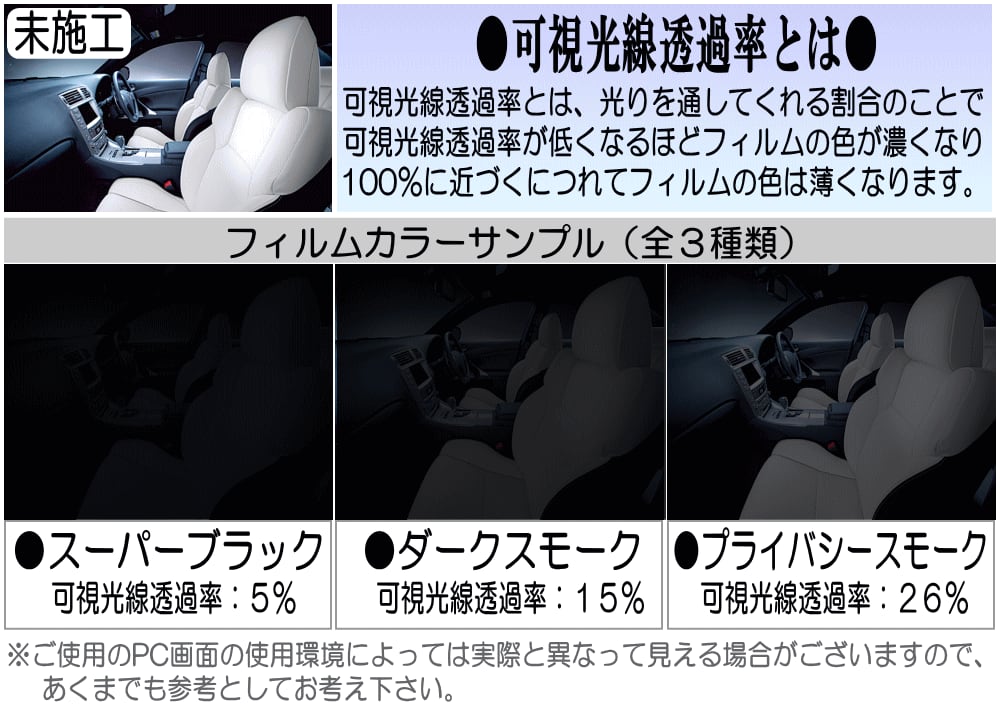 可視光線 透過率 (フィルムの濃さ/カラー) は