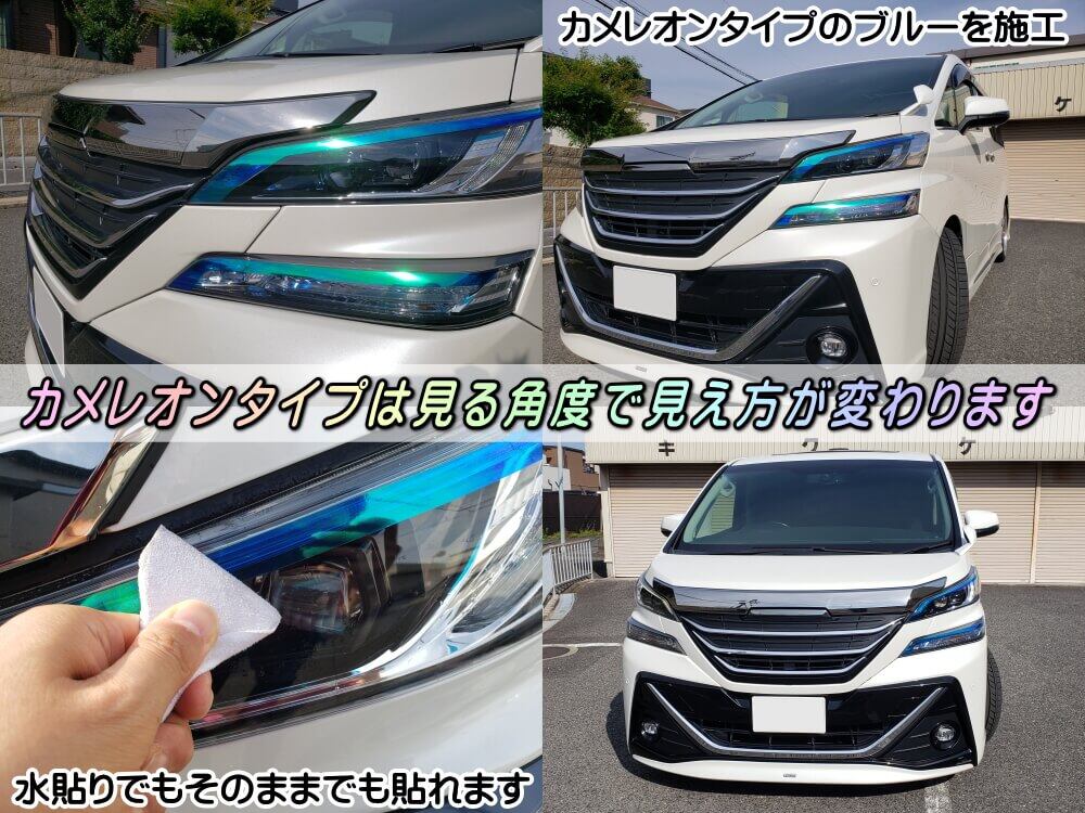 色味を気にされる場合は、ヘッドライトフィルム、カメレオンフィルムの各A4サイズをご購入頂き、