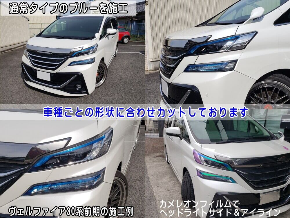 色味を気にされる場合は、ヘッドライトフィルム、カメレオンフィルムの各A4サイズをご購入頂き、