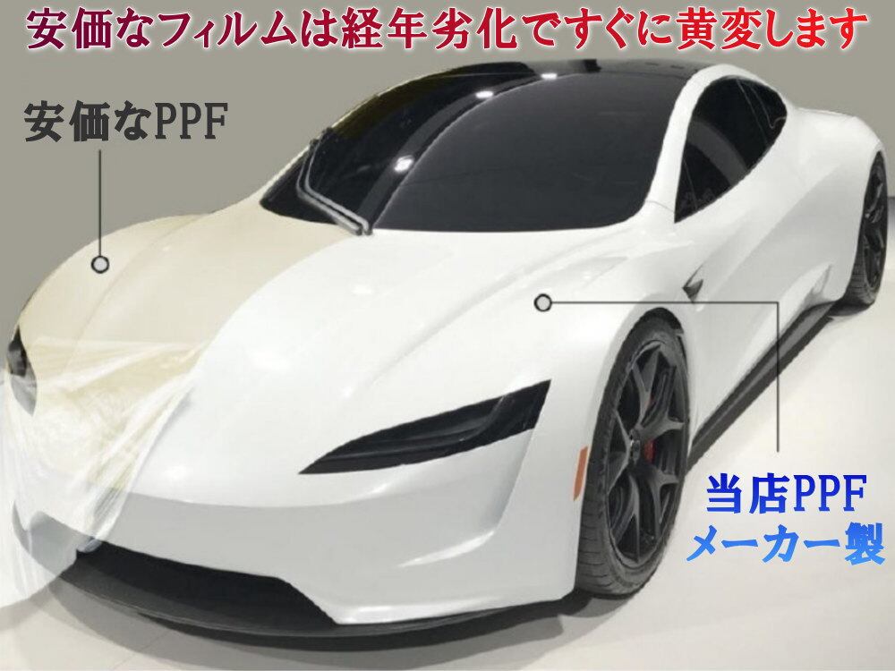弊社で取り扱っておりますカット済みカーフィルムのフィルムと同じメーカーのPPFフィルムを使用。