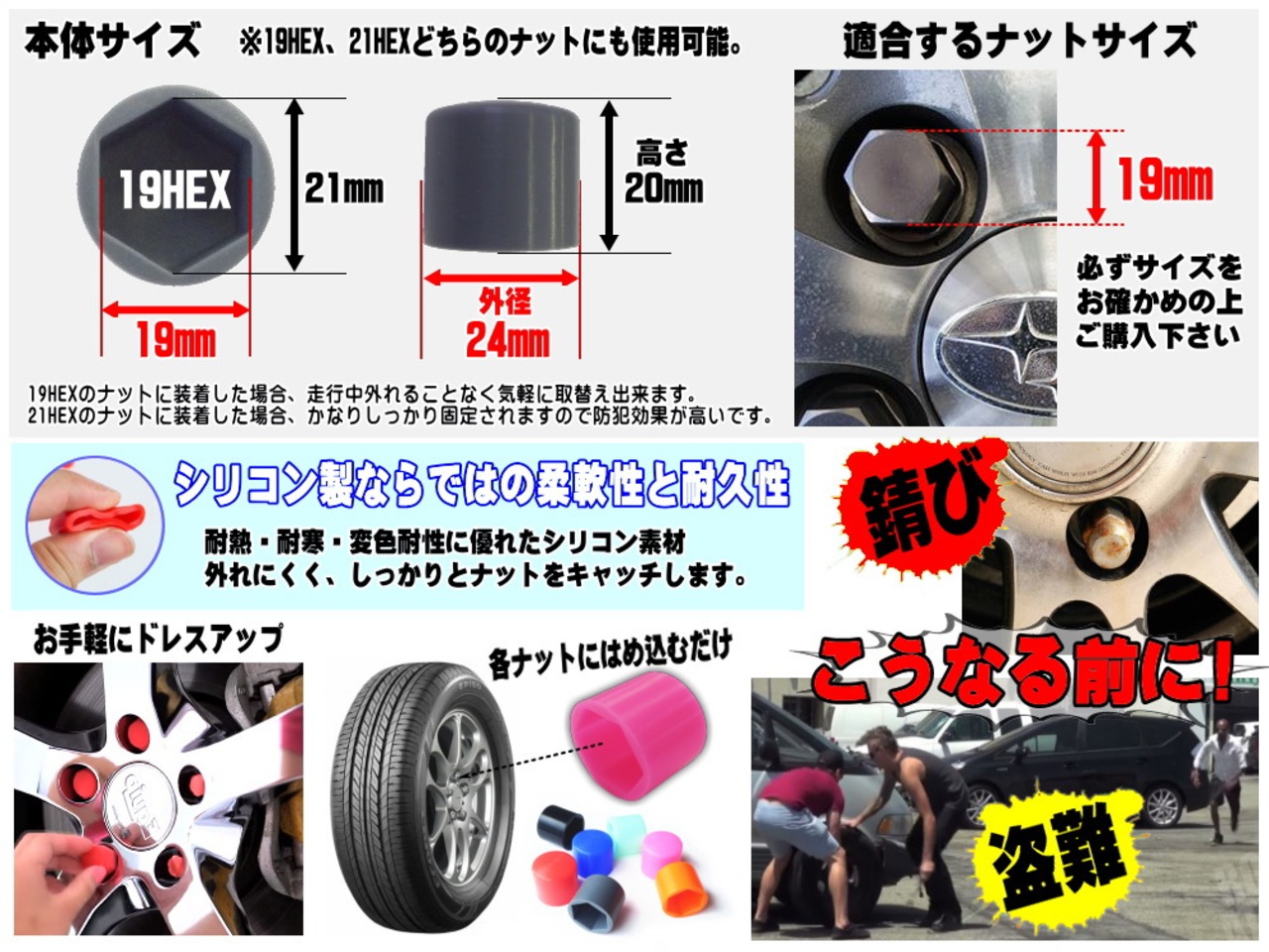 外れにくくタイヤの盗難防止対策にも活躍します。