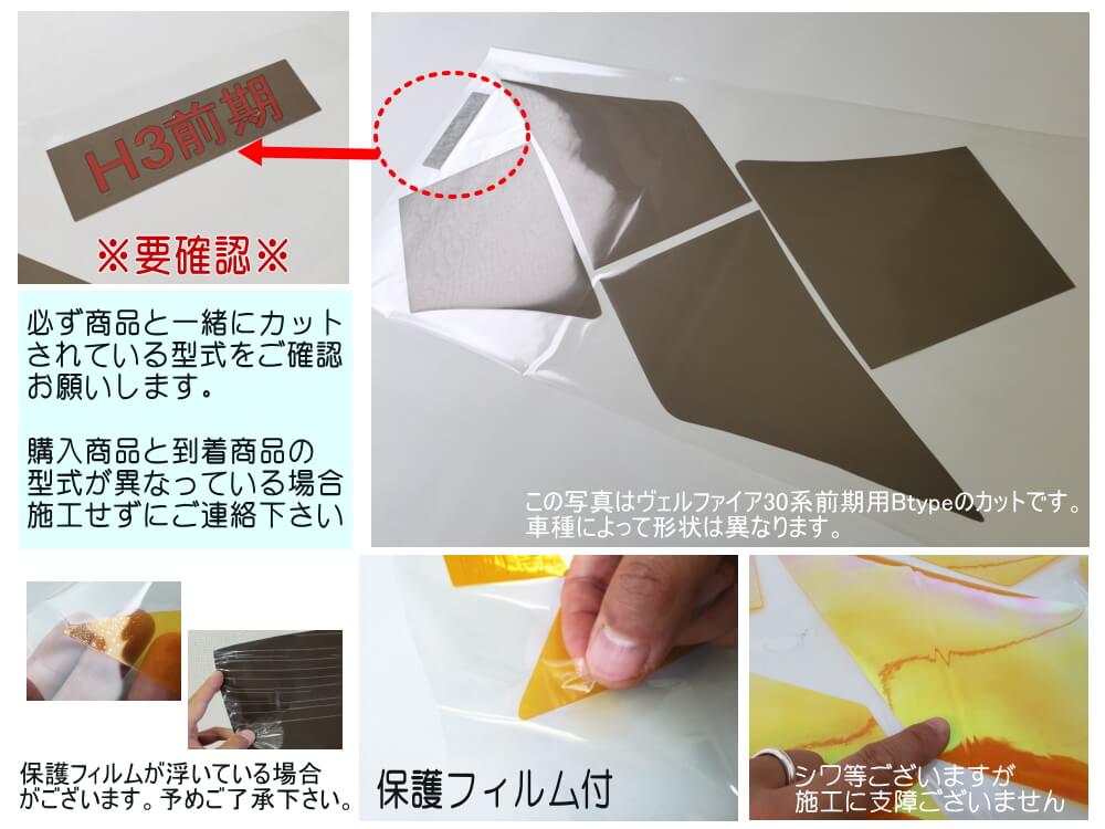 また商品には適合型式も一緒にカットしておりますので、施工前に購入商品で間違いないか