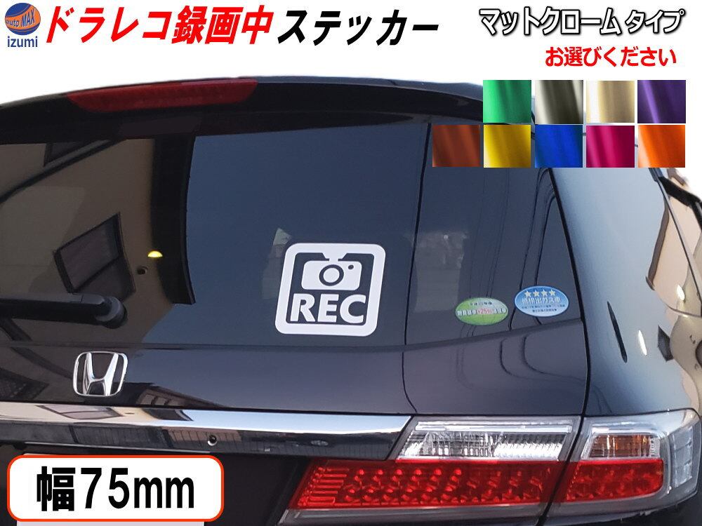 ドラレコ ステッカー (正方形) 75mm (マットクローム) 煽り運転防止ステッカー シール 録画中 撮影中 REC 防犯 車 煽り運転 抑止 ドライブレコーダー 煽り対策 | AUTOMAX izumi
