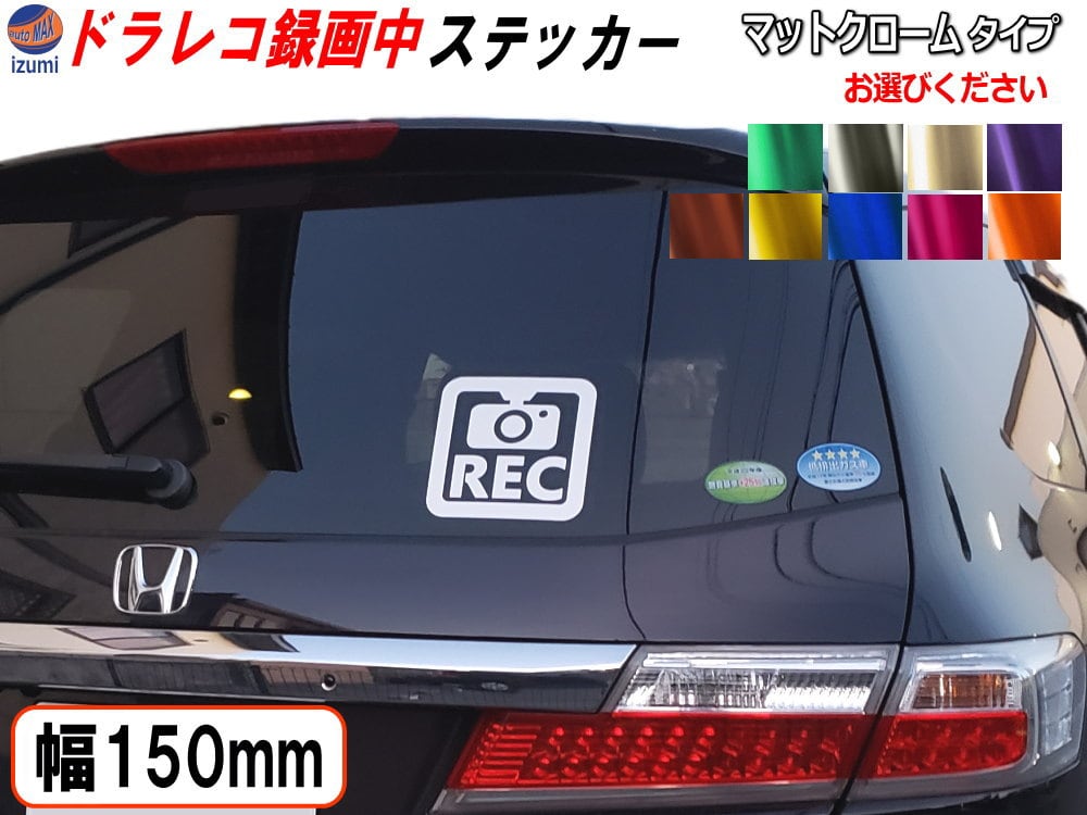 ドラレコ ステッカー (正方形) 150mm (マットクローム) 煽り運転防止ステッカー シール 録画中 撮影中 REC 防犯 車 煽り運転 抑止 ドライブレコーダー 煽り対策 | AUTOMAX izumi
