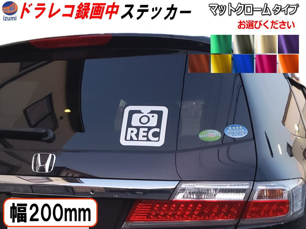 ドラレコ ステッカー (正方形) 200mm (マットクローム) 煽り運転防止ステッカー シール 録画中 撮影中 REC 防犯 車 煽り運転 抑止 ドライブレコーダー 煽り対策 | AUTOMAX izumi